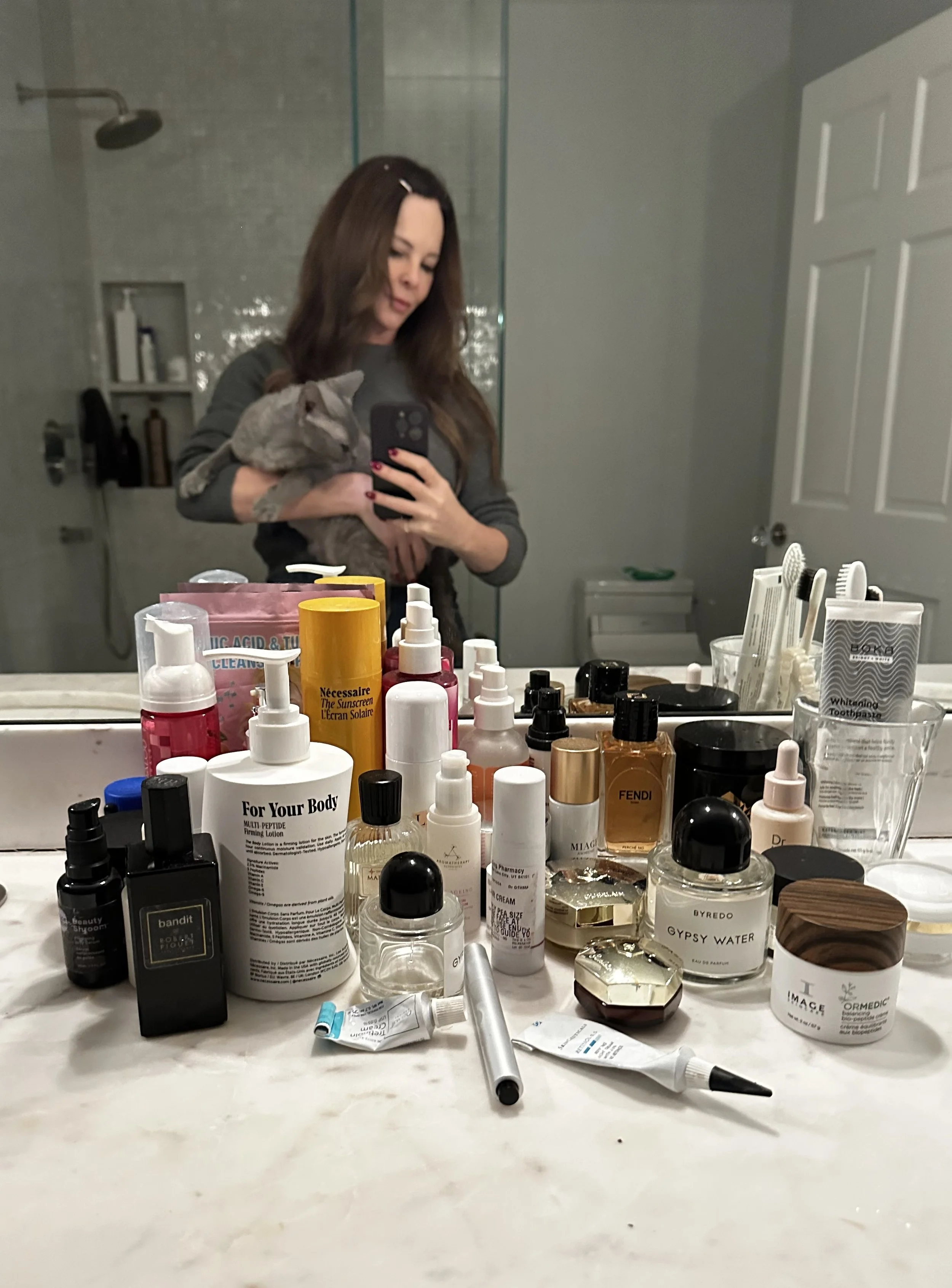 Lashes done & nails painted to feel effortlessly put together. For that dewy glow, I swear by Ilia tinted sunscreen – then a smudged eyeliner and a bit of a nude, pouty lip.
